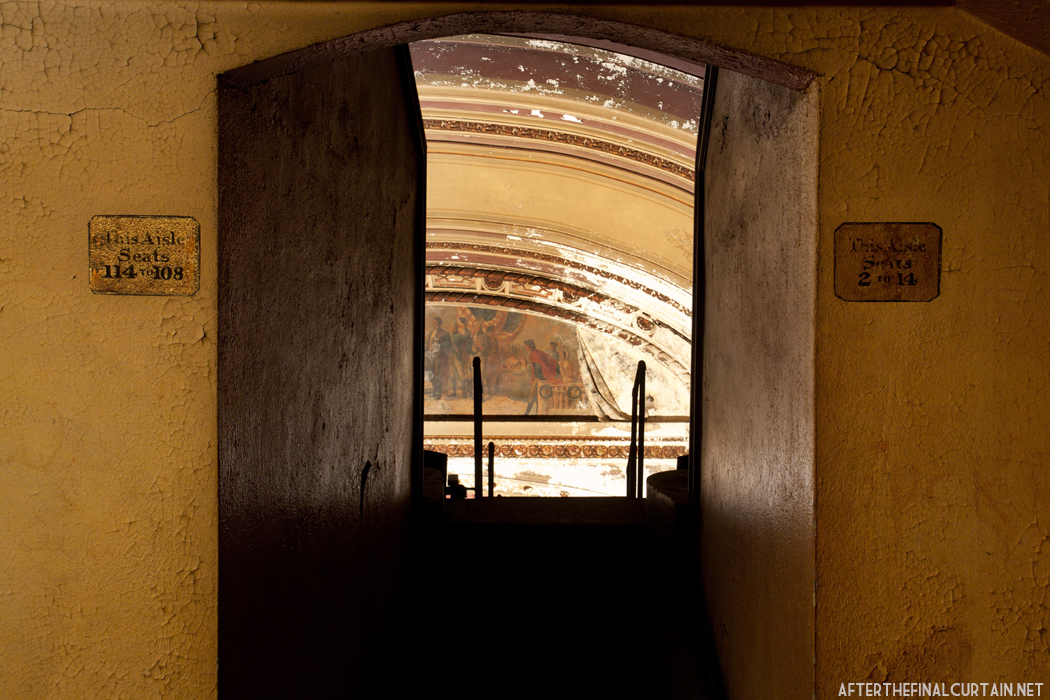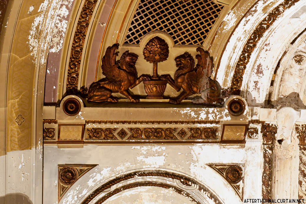 This ornate plaster work was originally painted gold, but it was painted over when the theater converted to show movies.