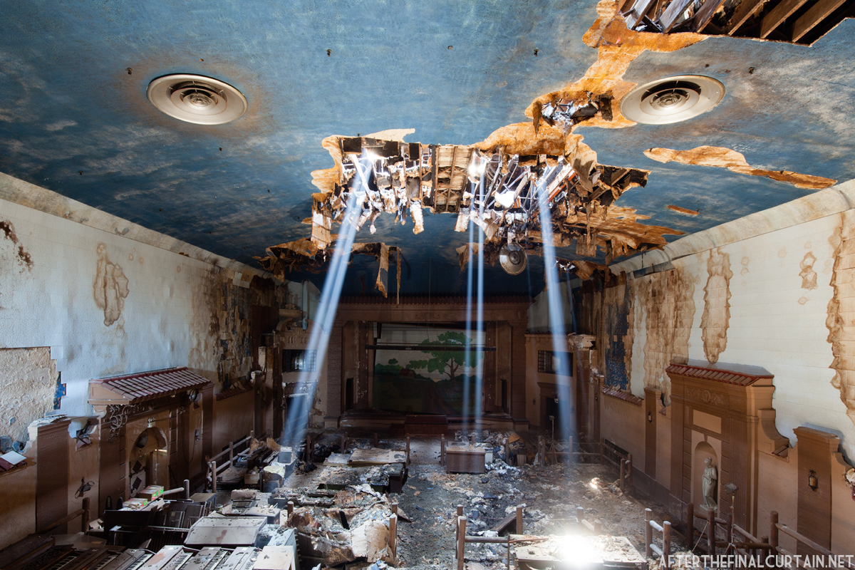 It’s so sad to see a beautiful, historic theater in shambles. II hope that someone is able to purchase and restore this building, even though it would be a lot of work.