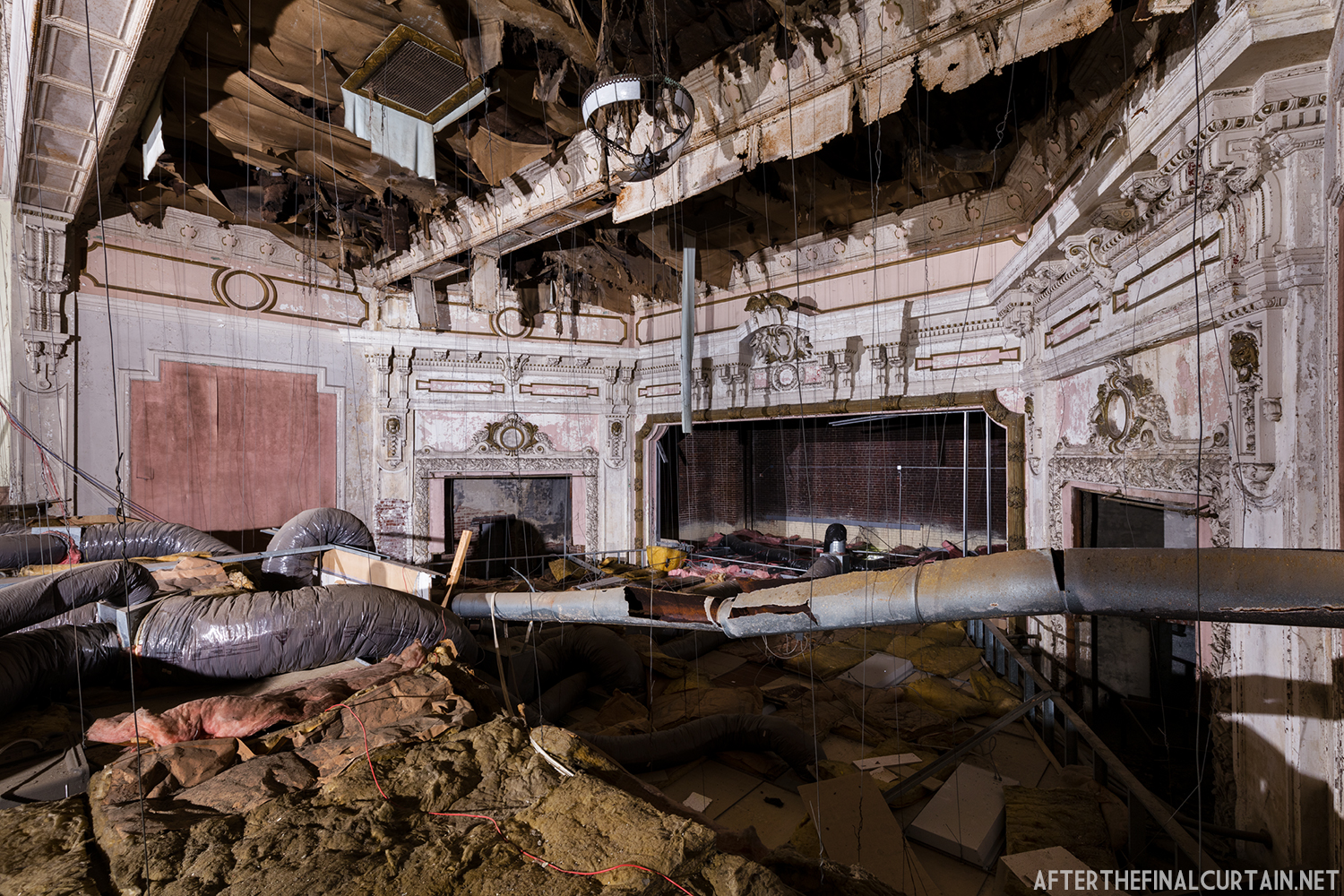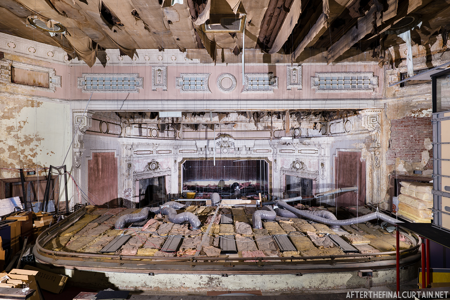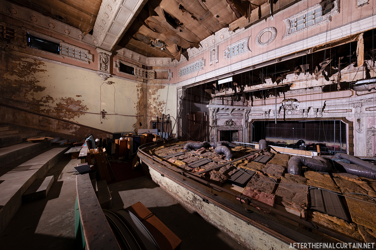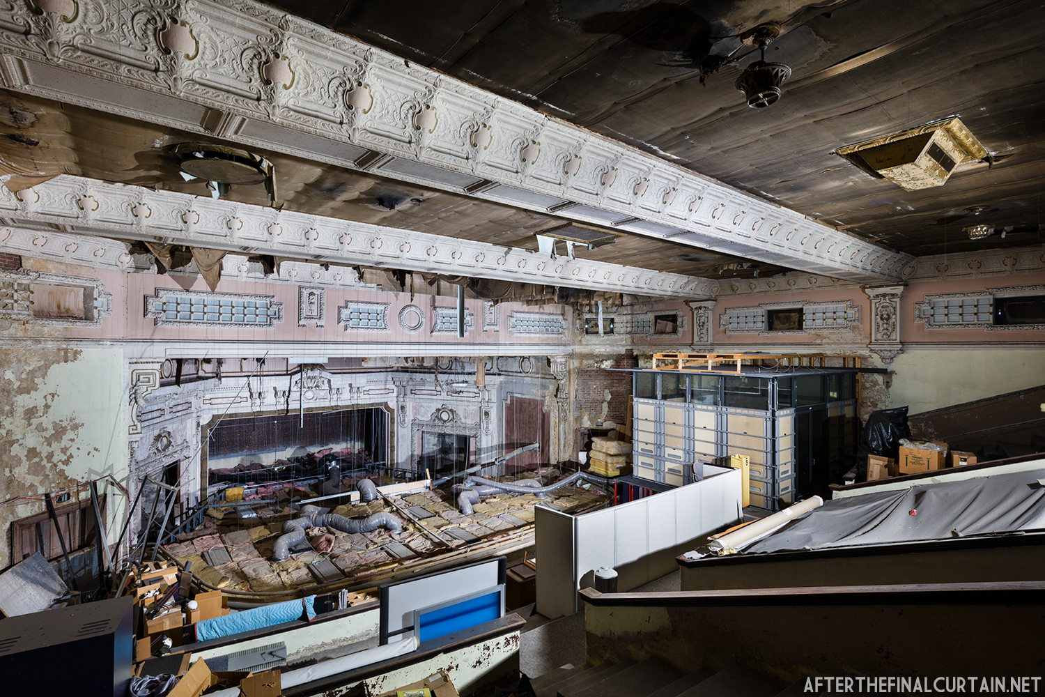 The building was nearly demolished in the 1980s but was instead preserved through adaptive reuse as a furniture showroom. It remained in that role for over 30 years, keeping much of the original structure intact. Decorative plaster details, the balcony-level projection booth, and stage architecture were hidden but survived behind drop ceilings and display walls.
