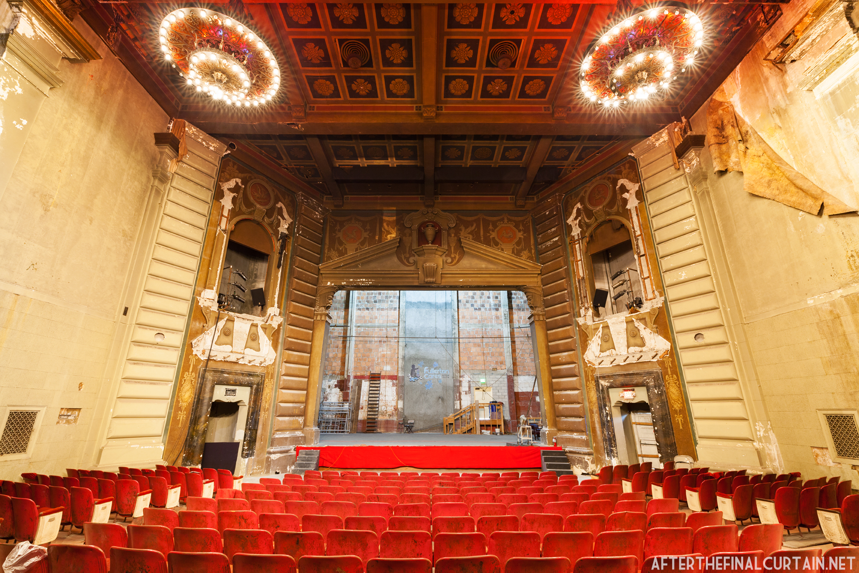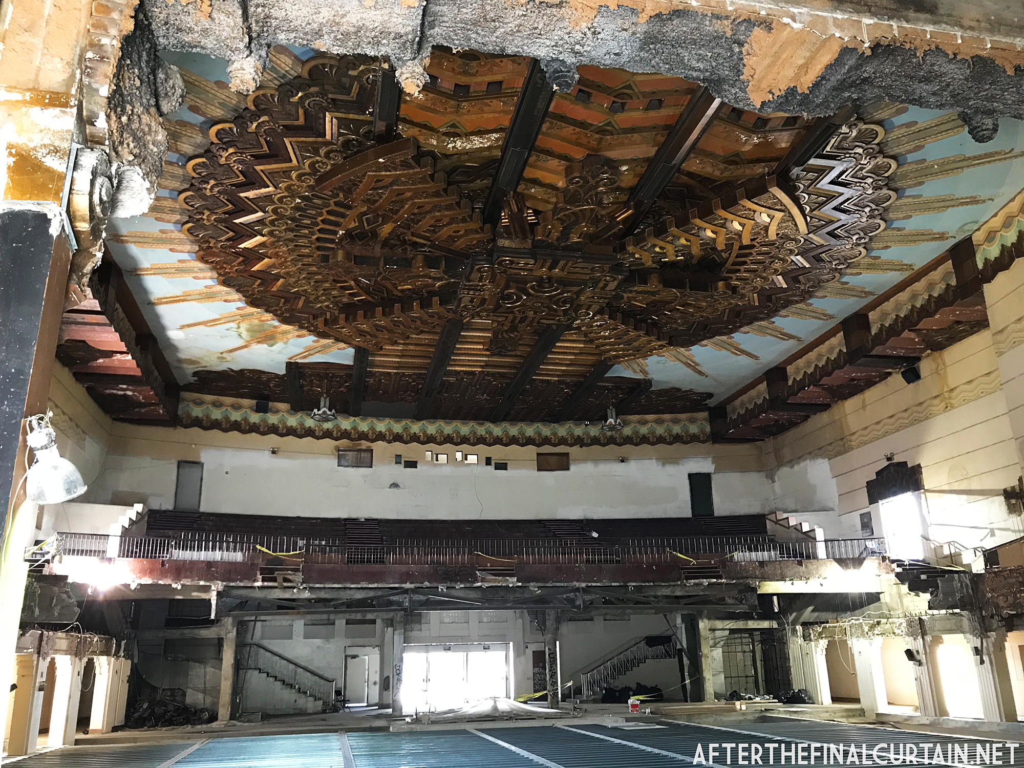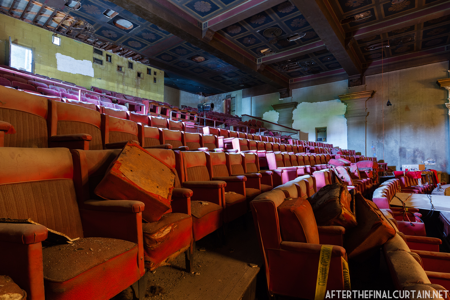 On August 29, 2021, the Rialto Theatre reopened as Mosaic Church, with its iconic neon marquee restored and its role as a community gathering space revived. However, the Rialto Theatre’s transformation into Mosaic Church came at a significant cost to its original design and historic features. During renovations, all of the original audience seating was removed and destroyed, with the sloped auditorium floor leveled to create a multi-purpose space. Many of the theater’s iconic plaster sculptures, including the intricately detailed harpies and the glowing-eyed gargoyle above the proscenium, were either covered or obscured. Additionally, the vibrant and historically significant color palette of the interior was replaced with a muted scheme of off-whites, further erasing the theater’s unique Jazz Age charm. These changes, while intended to modernize the space for contemporary use, have sparked concern among preservationists and community members who lament the loss of the Rialto’s architectural integrity.