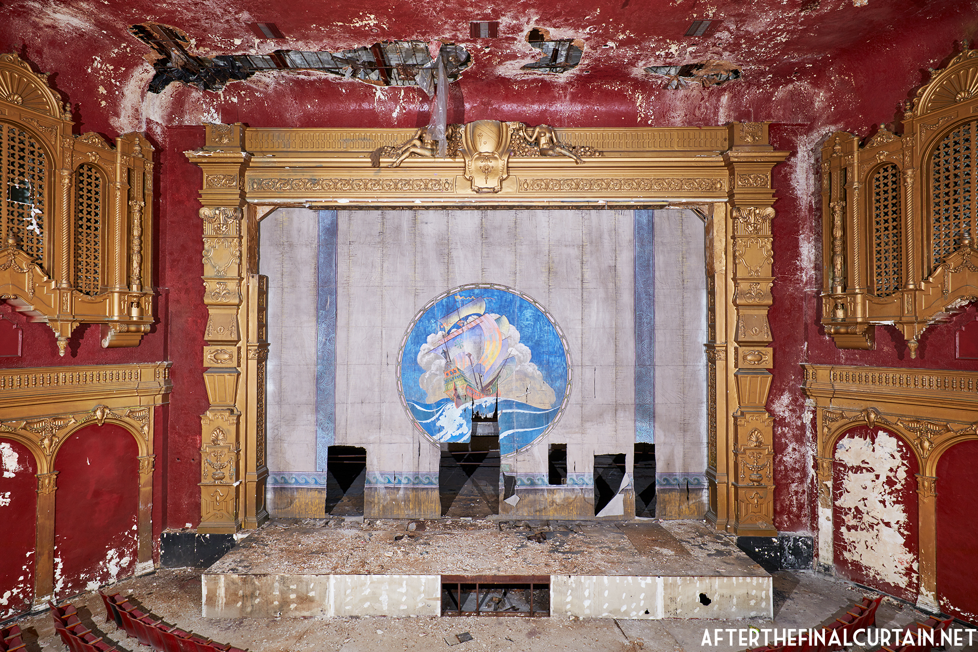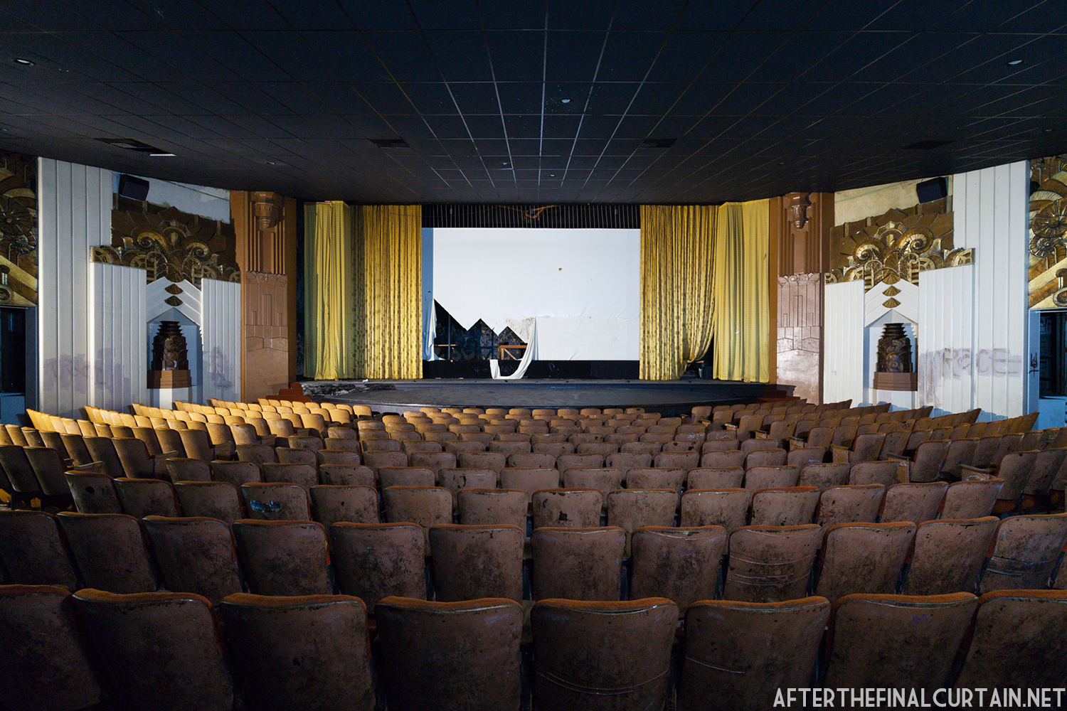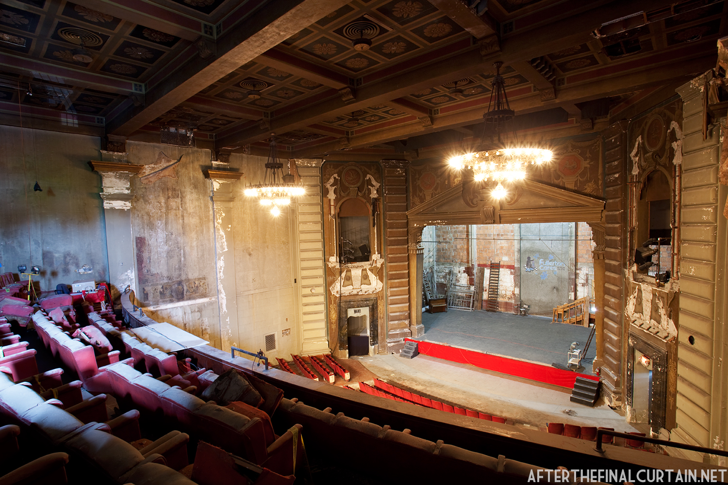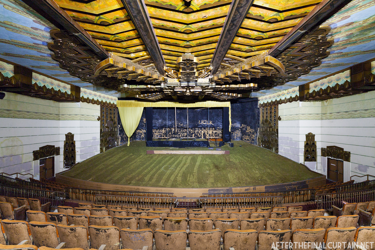 On August 29, 2021, the Rialto Theatre reopened as Mosaic Church, with its iconic neon marquee restored and its role as a community gathering space revived. However, the Rialto Theatre’s transformation into Mosaic Church came at a significant cost to its original design and historic features. During renovations, all of the original audience seating was removed and destroyed, with the sloped auditorium floor leveled to create a multi-purpose space. Many of the theater’s iconic plaster sculptures, including the intricately detailed harpies and the glowing-eyed gargoyle above the proscenium, were either covered or obscured. Additionally, the vibrant and historically significant color palette of the interior was replaced with a muted scheme of off-whites, further erasing the theater’s unique Jazz Age charm. These changes, while intended to modernize the space for contemporary use, have sparked concern among preservationists and community members who lament the loss of the Rialto’s architectural integrity.