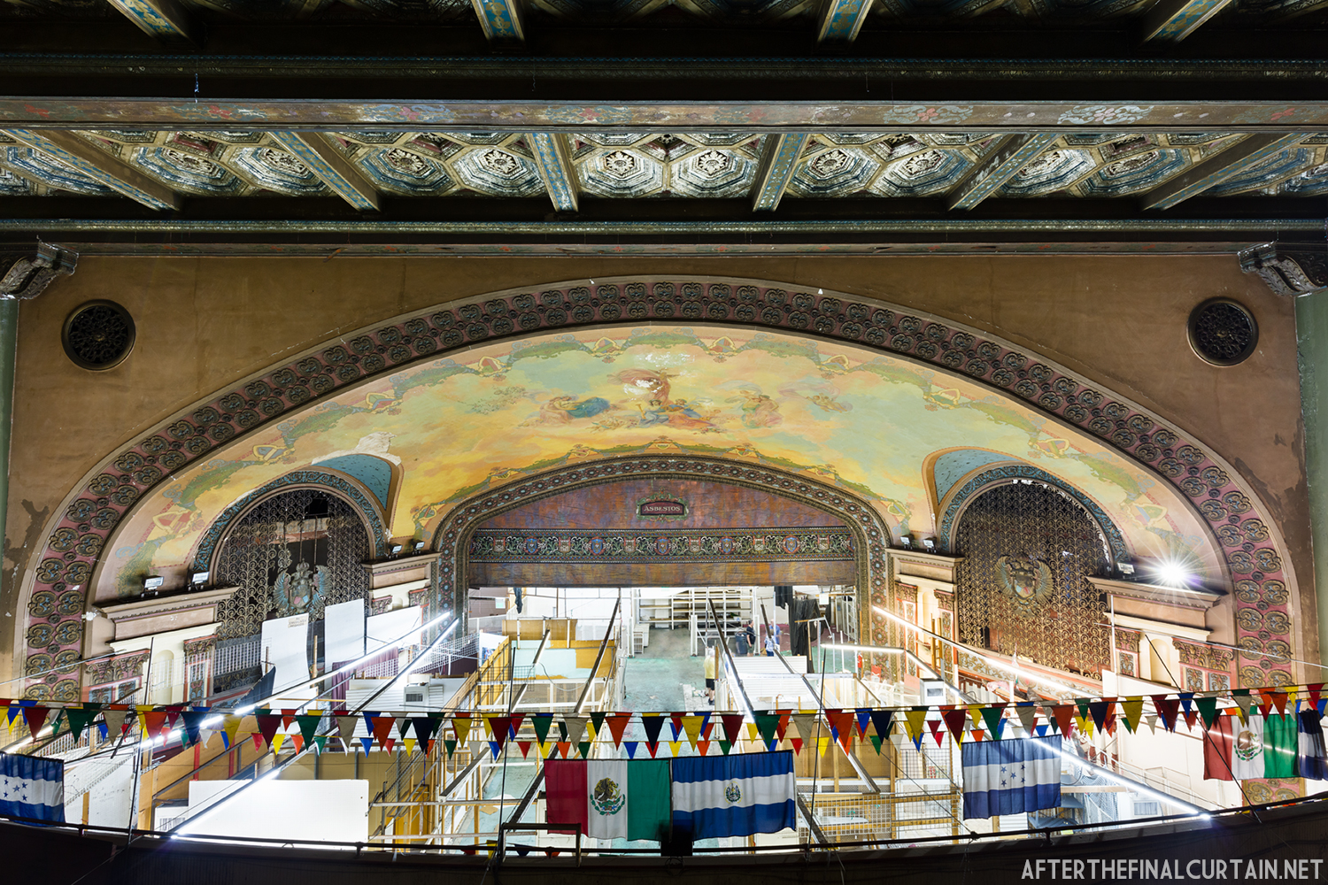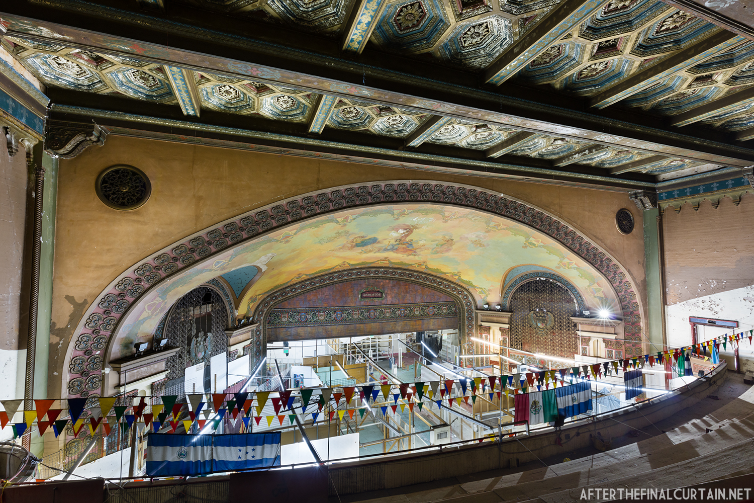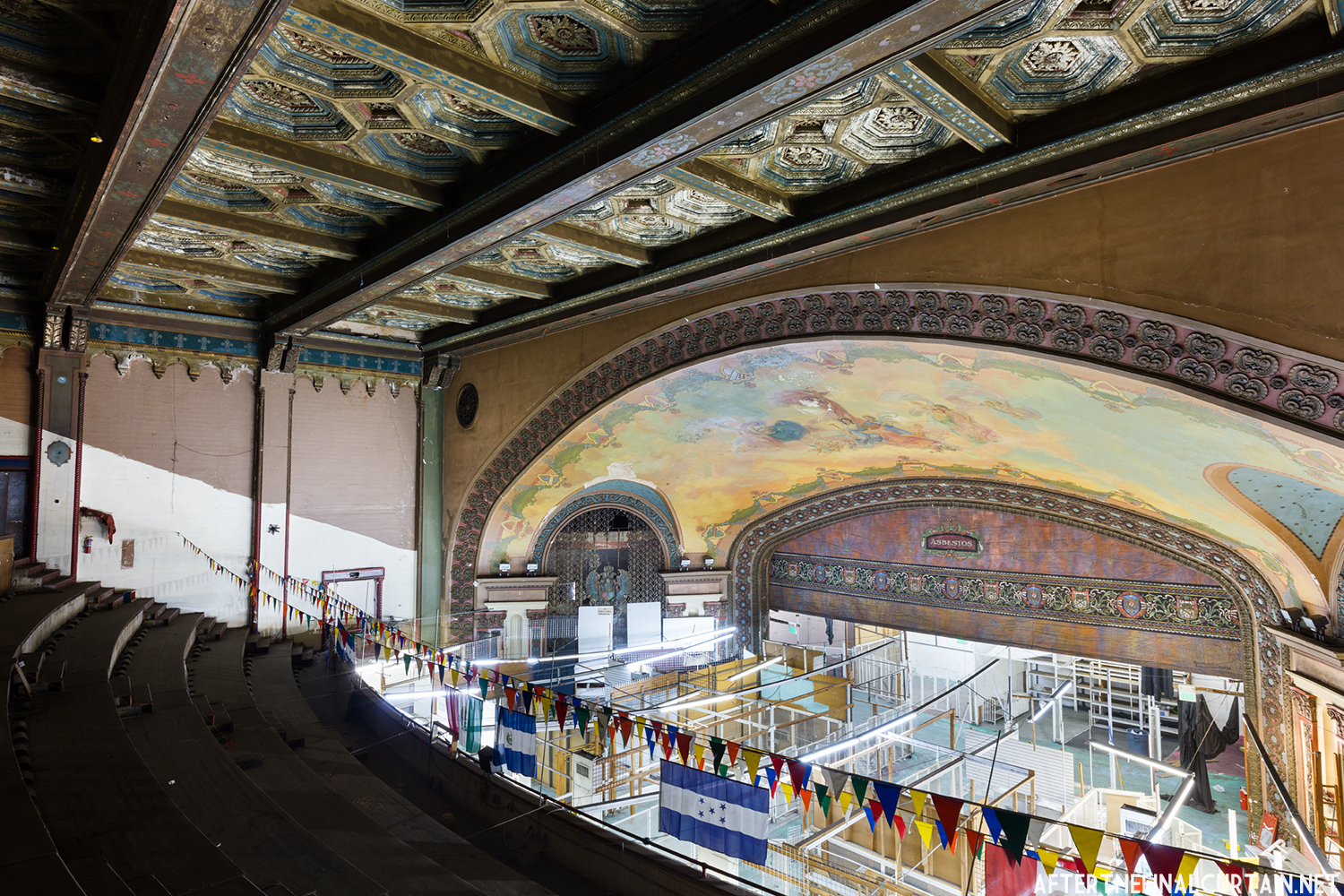 On August 29, 2021, the Rialto Theatre reopened as Mosaic Church, with its iconic neon marquee restored and its role as a community gathering space revived. However, the Rialto Theatre’s transformation into Mosaic Church came at a significant cost to its original design and historic features. During renovations, all of the original audience seating was removed and destroyed, with the sloped auditorium floor leveled to create a multi-purpose space. Many of the theater’s iconic plaster sculptures, including the intricately detailed harpies and the glowing-eyed gargoyle above the proscenium, were either covered or obscured. Additionally, the vibrant and historically significant color palette of the interior was replaced with a muted scheme of off-whites, further erasing the theater’s unique Jazz Age charm. These changes, while intended to modernize the space for contemporary use, have sparked concern among preservationists and community members who lament the loss of the Rialto’s architectural integrity.