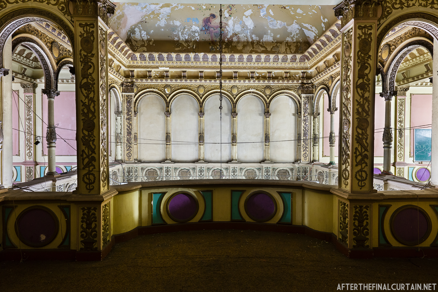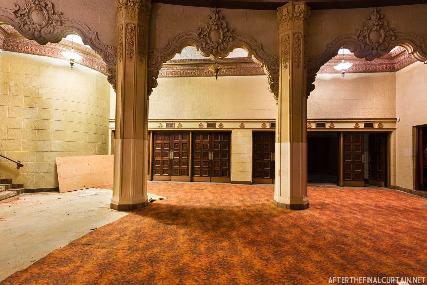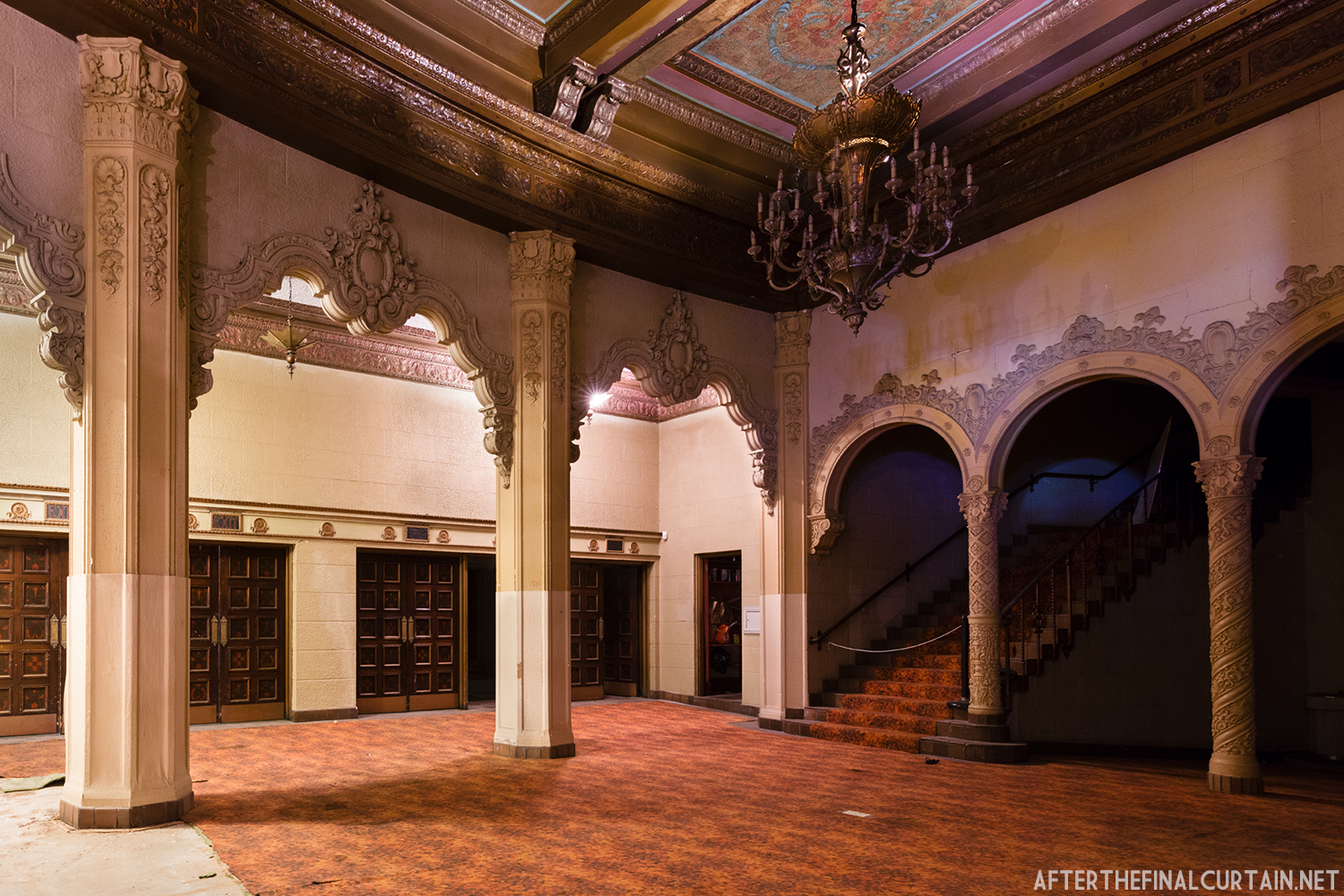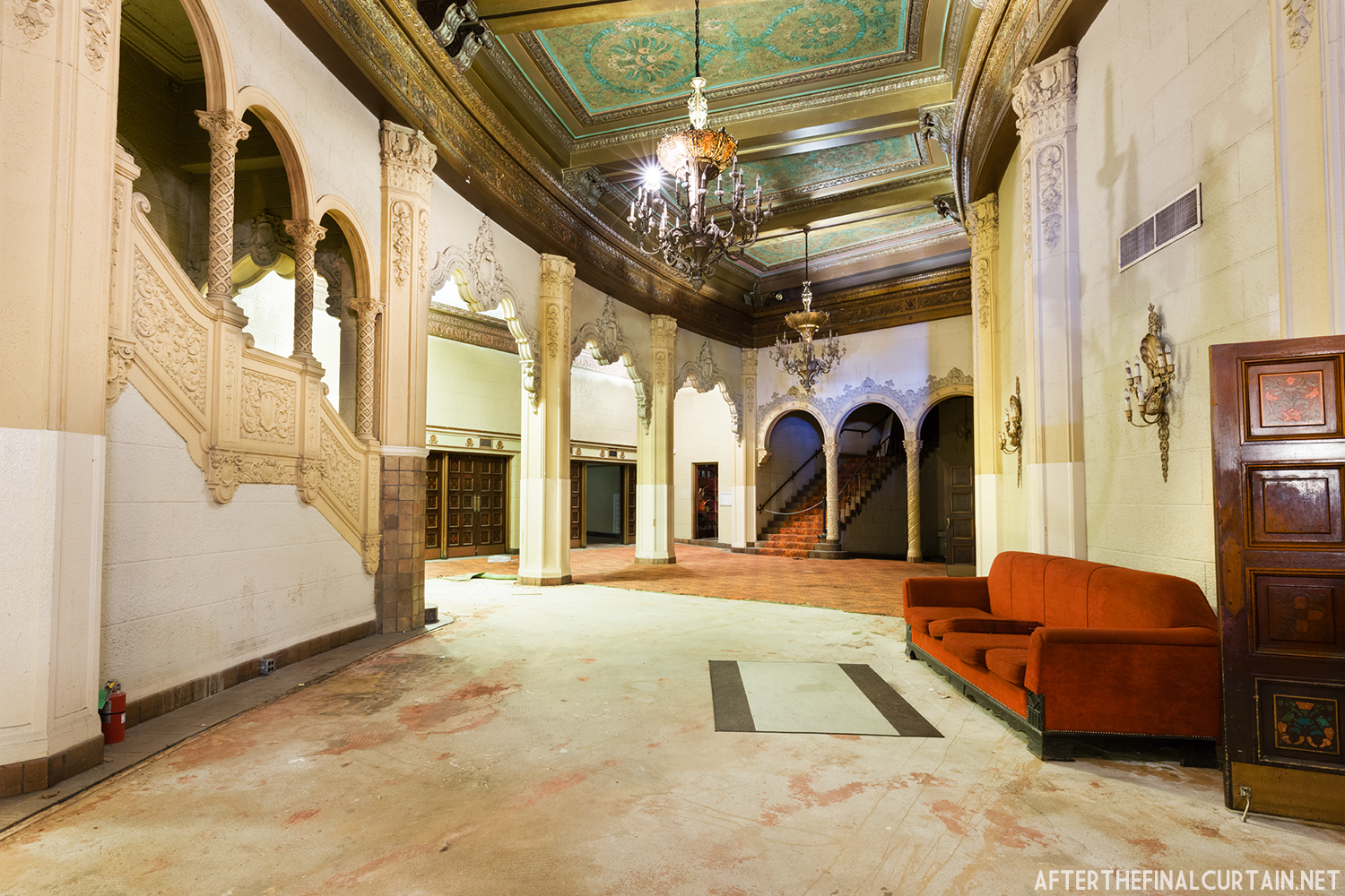 On August 29, 2021, the Rialto Theatre reopened as Mosaic Church, with its iconic neon marquee restored and its role as a community gathering space revived. However, the Rialto Theatre’s transformation into Mosaic Church came at a significant cost to its original design and historic features. During renovations, all of the original audience seating was removed and destroyed, with the sloped auditorium floor leveled to create a multi-purpose space. Many of the theater’s iconic plaster sculptures, including the intricately detailed harpies and the glowing-eyed gargoyle above the proscenium, were either covered or obscured. Additionally, the vibrant and historically significant color palette of the interior was replaced with a muted scheme of off-whites, further erasing the theater’s unique Jazz Age charm. These changes, while intended to modernize the space for contemporary use, have sparked concern among preservationists and community members who lament the loss of the Rialto’s architectural integrity.