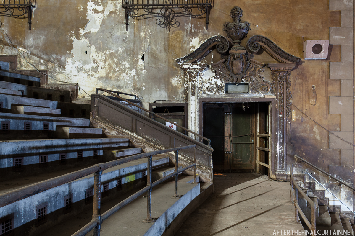 The fire escapes were closed off when the auditorium was converted into a warehouse.